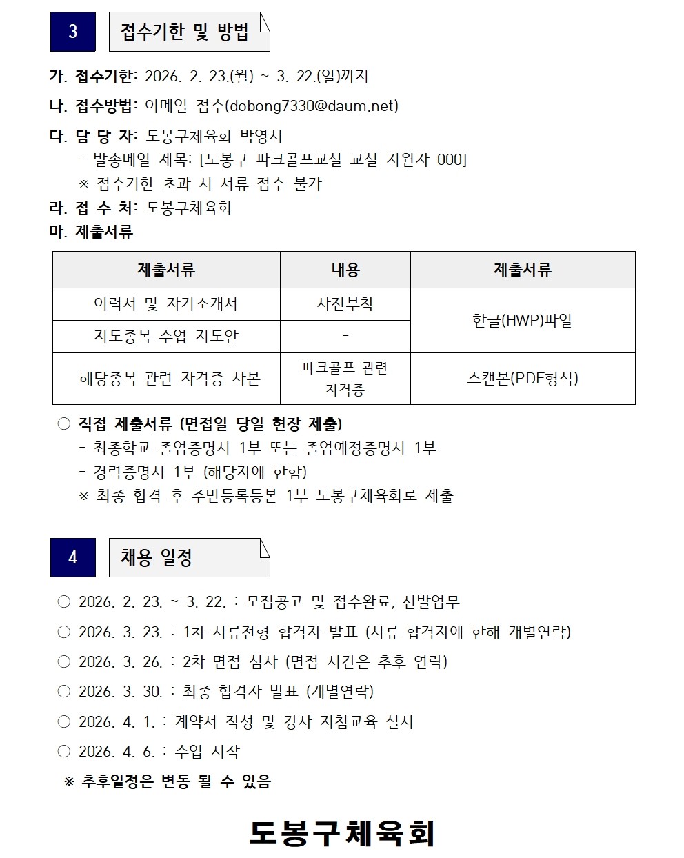 2026 도봉구파크골프교실 강사 추가채용 공고